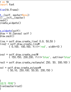 반응형 python24 [네트워크 보안] 파이썬 소켓 통신(UDP) / UDP 에코서버 실습 파이썬 소켓 통신(UDP) / UDP 에코서버 실습에 대해서 정리한다. ※ 소켓 - 입/출력을 하기위한 fd와 비슷한 역할 - 통신하려는 타입에 맞게 소켓을 생성해서 사용 ( 파일과 마찬가지의 개념 ) 많은 언어들이 네트워크 통신을 하기 위해서는 소켓을 사용하도록 하고 있다. * 소켓 프로그래밍 = 네트워크 프로그래밍 서버 : 요청을 받는 쪽 실행 -> 수신 대기 아이피 : 네트워크 상에서 호스트를 식별할 수 있는 식별정보 * 네트워크 전체에서 중복되선 안된다 ex) 집주소 포트 : 호스트 상에서 서비스를 식별하는 식별정보 * 호스트에서만 중복되지 않으면 된다. ex) 이름 클라이언트 : 요청을 하는 쪽 실행 -> 송신 - netstat -anu를 통해서 udp에서 사용하고 있는 포트번호 확인 가능 ( .. 2017. 6. 13. [20일차] python 그래픽 라이브러리 캔버스 / 선택정렬 표현 python 그래픽 라이브러리 캔버스 / 선택정렬 표현 선택정렬은 최소값을 구하는 함수와 그값을 정렬해주는 두가지 함수를 사용한다. ( 거품정렬을 표현할때와 비슷하지만 재귀함수를 쓸때는 i 값을 증가시켜서 재귀함수가 끝날수 있도록 해야한다 ) ( 리스트안에 500개의 값을 선택정렬하는것을 그림으로 표현해주고 다른 부분은 거품정렬과 똑같다 ) 2017. 3. 8. [19일차] python 그래픽 라이브러리 캔버스 / 거품정렬 표현 python 그래픽 라이브러리 캔버스 / 거품정렬 표현 그래픽 라이브러리에서 캔버스를 이용해서 선(line), 직사각형(rectangle), 타원형(oval) ...다양한 표현이 가능하다. ( 캔버스는 tk.Canvas( self )로 객체 생성이 가능하며 x, y 좌표를 이용해서 선이나 도형의 크기를조절할수 있다 ) * 지원하는 속성들이 다 조금씩 다르지만 fill은 안쪽의 색을 지정할때 사용되는 속성이고outline은 바깥선 색을 지정할때 사용이 된다. ※ 캔버스를 이용한 거품정렬 애니메이션 표현 리스트에 0~499까지의 숫자를 생성한다음 random.shuffle로 섞어주어 난수를 만든걸 프레임에 oval을 이용해서 점들로 표현해준다. 그리고나서 프레임에 있는 점들을 모두 지웠다가 거품정렬을 1회전.. 2017. 3. 7. [18일차] python 그래픽 라이브러리를 이용한 단위 변환 프로그램 python 그래픽 라이브러리를 이용한 단위 변환 프로그램 값을 입력해서 변환 버튼을 눌러주면 변환해주는 온도, 거리, 무게 단위 변환 프로그램이다. ( 초기화 버튼을 누르면 모든 입력 값을 지워준다 ) 현재 시스템 환경에서 사용 가능한 폰트 종류를 알아보려면 실행기에 아래 코드를 차례대로 입력해보면 확인할수 있다. from tkinter import Tk, font root = Tk() font.families() 화씨를 섭씨로 변환 해주고 섭씨를 화씨로 변환 해준다. ( 아래도 마찬가지로 양쪽 다 변환이 가능하다 ) 값을 입력하지 않거나 잘못 입력했을때는 상황별로 메시지 박스가 뜨면서 사용자에게 알려준다. 메시지 박스를 사용하려면 import tkinter.messagebox를 해주면 사용이 가능하다.. 2017. 3. 6. [17일차] python 클래스 / 그래픽 라이브러리 python 클래스 / 그래픽 라이브러리에 대해서 정리한다. ※ python 클래스와 상속을 이용해서 아래 문제를 해결한다. - 입력받을 횟수를 입력하고 그다음엔 교수이면 1, 학생이면 2를 입력해서 구분해주고1을 입력했으면 교수의 name, age, publications을 입력받고2를 입력했으면 학생의 name, age, marks를 입력 받는다.그다음 입력에 대한 결과를 차례대로 출력해준다. ( Sample Input을 입력받아서 Sample Output이 출력되도록 해야된다 ) ( 교수와 학생의 공통 속성을 Person 클래스로 만들어두면Professor와 Student 클래스를 만들때 이 속성을 상속 받아 사용이 가능하다 ) * Professor 클래스에서는 Person을 상속받고 그 외에 필요.. 2017. 3. 3. [16일차] python 클래스 상속(inherit) python 클래스 상속(inherit)에 대해서 정리한다. ※ 상속(inherit) - 물려주고, 물려받는 내용 즉, 클래스에 있는 내용을 물려줘서(물려 받아서) 쓸수 있다. - 상속 되는 클래스를 부모(Parent), 베이스(Base) 클래스라고 하고 상속 받는 클래스를 자식(Child), 파생(derive) 클래스라고 한다. - 한번에 다중 상속도 가능하지만 파이썬과 같은 경우에는 2개까지만 지원한다. - 클래스는 상속을 따로 받지 않아도 모든 클래스에는 최상위 클래스인 Object 클래스를 상속 받아서 객체가 생성된다. - 부모 클래스에 접근할때 클래스 이름 대신 super()를 이용하면 자신의 부모 클래스를 명시적으로 나타낼수 있다. - 부모 클래스에 메서드 변수를 '__'(프라이빗)으로 캡슐화.. 2017. 3. 2. [15일차] python 클래스(Class)의 구성요소 / 캡슐화 / @property / @staticmethod python 클래스의 구성요소 / @property / @staticmethod에 대해서 정리한다. ※ 클래스의 구성요소 - 멤버 변수 1. 클래스 변수* 공유 변수 : 모든 객체가 서로 공유하는 단 하나의 변수* @staticmethod는 기본적으로 클래스 변수와 비슷한 성질을 가지고 있다. 2. 객체(인스턴스) 변수* 객체가 만들어지고 나서 사용 가능한 변수* 객체가 생성된 이후에 멤버를 지정할 수 있다. ( python에서는 클래스안에 내용이 없어도 객체로 만든다음객체 안에 변수를 만들어서 쓰는것도 지원하고 있다 ) - 멤버 메서드(함수) * 멤버 메서드의 첫번째 인자는 self여야 한다